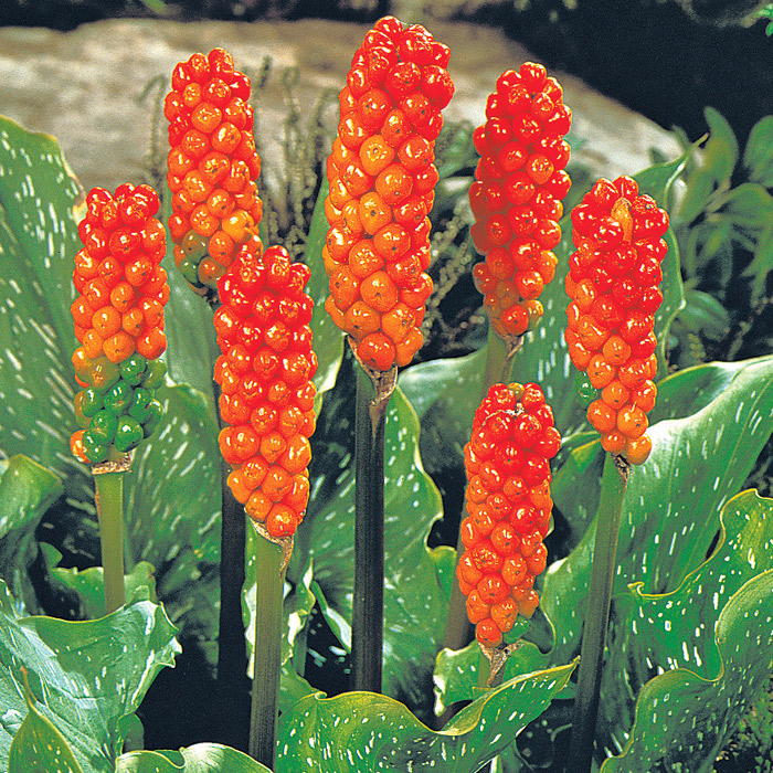 Рассада Аронника итальянского Arum Іtalicum (Арум Италикум) хорошо растет в солнечном и тенистом месте. Из семян весной появляются листья, а затем соцветия. В августе растение дозревает. Ягоды Аронника итальянского ядовиты. Особенности ухода: 1. Поливать нужно часто, если Аронника итальянская растет в солнечном месте (не реже 2-3 раз в неделю); 2. Не требует чрезмерной влажности в тени; 3. Высаживать лучше на западной и восточной стороне; 4. Дополнительные удобрения не требуются, хватает удобрений из почвы; 5. Сильные морозы растение не переносит, поэтому зимой его нужно накрыть.