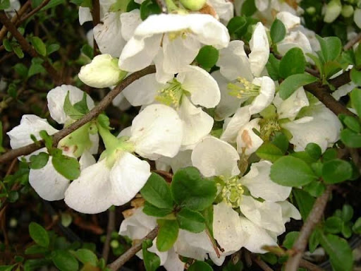 Саженцы айвы (хеномелес) превосходной Джет Трэйл (Jet Trail) уже давно используются ландшафтными дизайнерами за свои декоративные особенности. К преимуществам этого сорта можно отнести: низкая крона распростертой формы; крупные белоснежные цветки; не требует частой обрезки. Практически на весь май кустарник покрывается цветочками, при этом темно-зеленые листочки появляются уже в период цветения. В начале осени созревают терпкие на вкус плоды. Айва превосходная Джет Трэйл отлично смотрится в групповых посадках, особенно на фоне вечнозеленых хвойных кустарников.