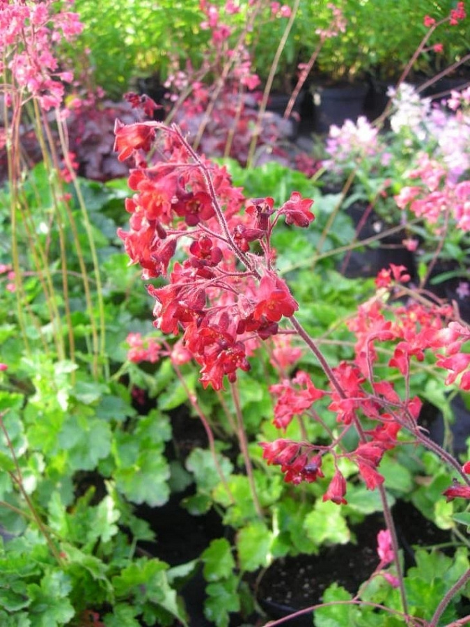 Рассада гейхеры Руби Беллс (Ruby Bells) сохранит декоративность и придаст живой вид вашему саду с ранней весны и до первых осенних заморозков. Это дивное растение американцы называют «рубиновым колокольчиком». Его высота колеблется в районе 20-30 см, цветут все лето. Предпочитают легкозатененные места или полутень, загнивают при долговременном застое воды в почве. Кроваво-красный цвет отлично замаскирует недостатки вашего участка или заполнит пустоту. Пересаживать гейхеры Руби Беллс рекомендуется примерно через 5 лет после посадки. Обходятся без зимнего укрытия.