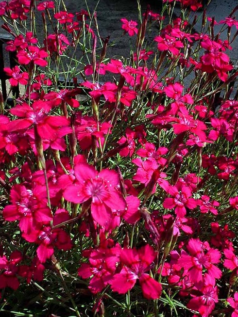 Саженцы Гвоздики травянки Леучтфинк (Leuchtfunk Dianthus deltoides) идеально подходят для создания красивого цветущего ковра, который будет радовать своими яркими красками на протяжении нескольких лет. Куст быстро разрастается и заплетает свободное пространство. Цветет обильно на протяжении всего лета, небольшие ярко-красные бутоны возвышаются на тонких стеблях, которые вырастают до 20-25 сантиметров. Бутоны могут похвастаться ярким ароматом, который привлекает различных насекомых. Стебель и листья имеют бледный голубовато-зеленый оттенок, хорошо сохраняют свою декоративность в зимний период.