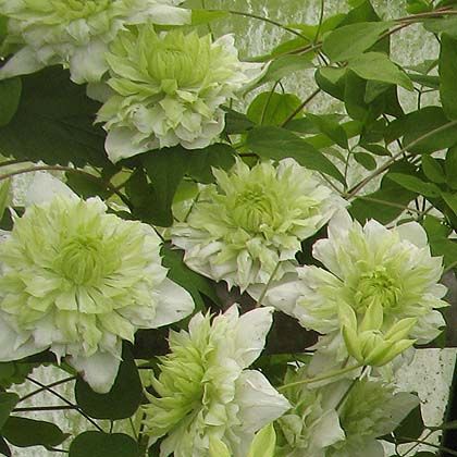 Саженцы Клематиса гибридного Alba Plena (Clematis) высаживается на солнечное место участка, которое хорошо защищено от ветра и сквозняка. В высоту достигает 2 метров. Можно выращивать как вертикально, так и как почвопокровное растение. Предпочитает легкую, богатую на органические и минеральные питательные вещества почву. Перед посадкой почву нужно хорошо дренировать. Альба Плена цвет долго – с июня по сентябрь месяц. Цветки очень оригинальные, махровые, имеют бело-зеленый оттенок. Примечательно, что данный сорт можно выращивать как в открытом грунте, так и в зимнем саду или оранжереи.
