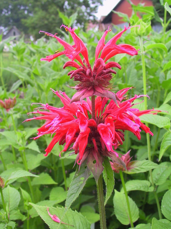 Монарда гибридная Кембридж Скарлет цветет ярко-малиновыми небольшими шарообразными бутончиками с тоненькими лепестками. Растение без проблем переносит морозы в открытом грунте и уже весной радует молодыми побегами. Размножать можно семенами, высевая их сразу в открытый грунт или предварительно выращивая рассаду.