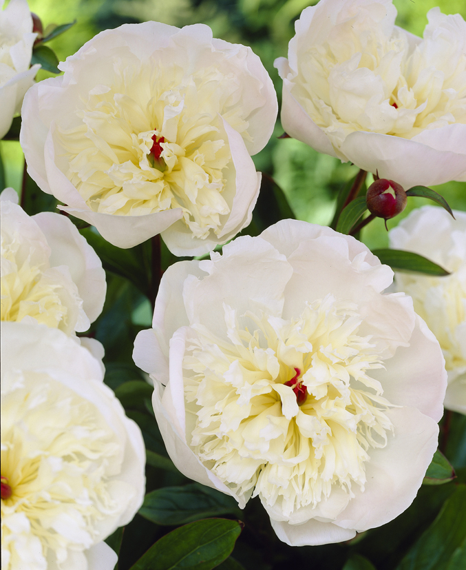 Рассада пиона молочноцветкового Иммакюле (Immaculee) хорошо приживается, и долго будет радовать садоводов обильным цветением нежных белых цветков. Растение многолетнее, без пересадки будет расти и цвести несколько лет подряд. Цветение начинается в конце весны или в начале лета, и может длиться 2-3 недели. Цветки крупные, полумахровые – кудрявая кремовая сердцевина обрамлена ровными округлыми белыми лепестками. Эффектны в срезке. Высота взрослого растения 60-80 см. Сорт размножается черенками и семенами. Особенности пиона Иммакюле: