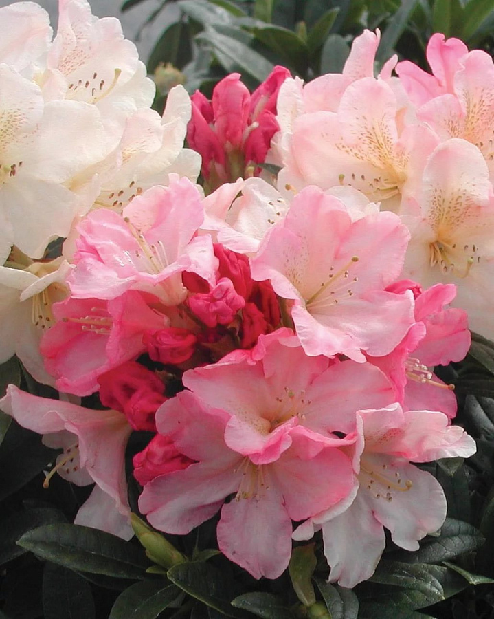 Саженцы рододендрона Перси Вайсман (Percy Wieseman) - замечательное вечнозеленое морозоустойчивое растение для городского и загородного озеленения. Сорт максимально растет до 1 метра высотой. Ветвится кустарник хорошо. Ветки с листьями желтоватого цвета, не подвержены болезням. Раньше других сортов рододендронов крупномер Перси Вайсман начинает цвести прекрасными цветами от белого до нежно-розового цвета в пышных соцветиях. Период этот продолжается более 20 дней на радость окружающим.