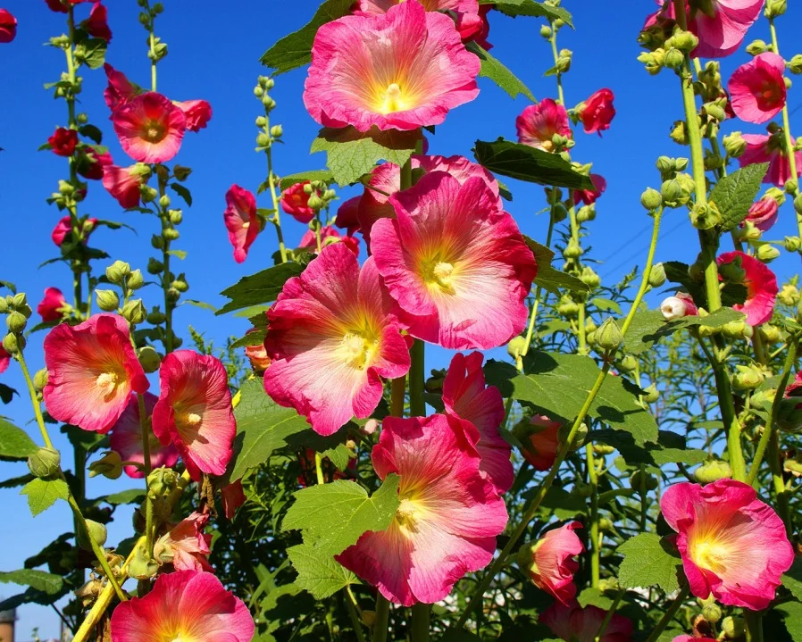 Шток-роза хало ред - это изысканное растение с великолепными вишнево-розовыми цветками, которые будут радовать ваш взгляд в течение двух сезонов. Ее ствол достигает высоты до 200 см, что делает ее идеальным украшением для вашего сада или огорода. Листья этого растения имеют элегантную форму и насыщенный зеленый цвет, что придает ему особый шарм.