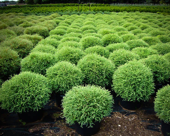 Саженцы туи западной Мр Боулинг Болл (Mr Bowling Ball) вырастают в восхитительный карликовый кустарник, который может быть высажен в большие контейнерные клумбы. Крона отличается правильной шаровидной кроны и практически не требует формировочной обрезки.